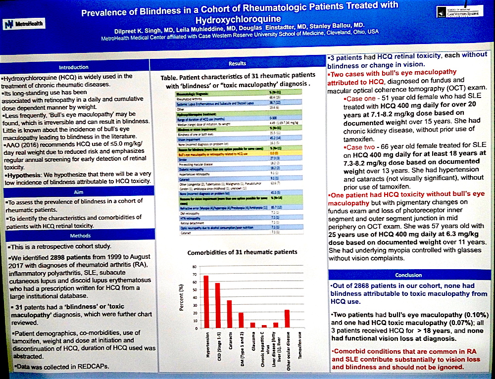 Singh D, Muhieddine L, Einstadter D, Ballou S. Prevalence of Blindness in a Cohort of Rheumatologic Patients Treated with Hydroxychloroquine [abstract]. Arthritis Rheumatol. 2017; 69 (suppl 10).