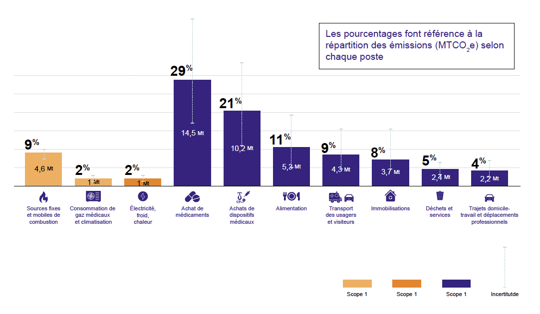 Les émissions directes et indirectes dans le secteur de la santé