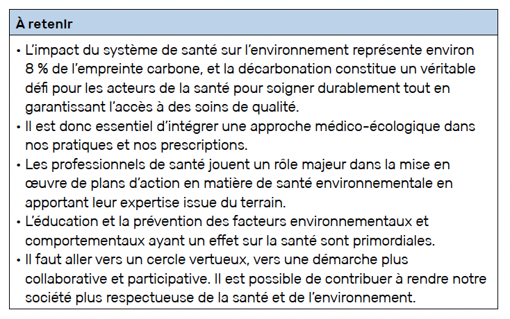 Dans les pays développés, l’impact du système de santé sur l’environnement représente environ 8 % de l’empreinte carbone (3). Il est donc essentiel d’intégrer une approche médico-écologique dans nos pratiques et nos prescriptions.
